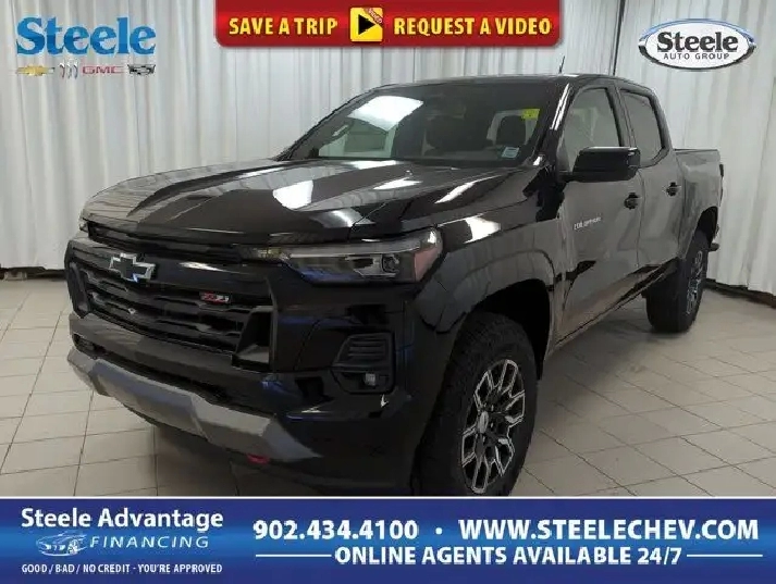Prepare to command attention with our 2026 Chevrolet Colorado Z71 Crew Cab 4X4 in Black, purpose-built for all-terrain dominance and off-road thrills. Motivated by a 2.7L TurboMax generating 310hp for an 8 Speed Automatic transmission with a multimode performance system. This Four Wheel Drive truck earns approximately 11.2L/100km on the highway and boosts trail capability with a 2-speed transfer case and auto-locking rear differential. Born bold, our Colorado boasts LED lighting, fog lamps, red recovery hooks, a CornerStep rear bumper, alloy wheels, cargo-bed lighting, a sunroof, and a 120V outlet. Take a look at our Z71 cabin, which supports adventurous escapes with heated Cloth/Evotex seats, a heated steering wheel, a manually sliding rear window, keyless access/ignition, a 120V outlet in the interior, and full power accessories. Tech features include an 11.3 inch touchscreen, 11 inch driver display, WiFi hotspot capability, Google Built In, wireless Android Auto?/Apple CarPlay?, Bluetooth?, and a six speaker audio system. Premium peace of mind comes into play with Chevrolet safety measures such as automatic braking, hill start assistance, hill descent control, lane-keeping assistance, forward collision warning, lane-departure alert, a rearview camera, and more. Engineered for overachievers, our Colorado Z71 is ready to go! Save this Page and Call for Availability. We Know You Will Enjoy Your Test Drive Towards Ownership! Steele Chevrolet Atlantic Canada's Premier Pre-Owned Super Center. Being a GM Certified Pre-Owned vehicle ensures this unit has been fully inspected fully detailed serviced up to date and brought up to Certified standards. Market value priced for immediate delivery and ready to roll so if this is your next new to your vehicle do not hesitate. You've dealt with all the rest now get ready to deal with the BEST! Steele Chevrolet Buick GMC Cadillac (902) 434-4100 Metros' Premier Credit Specialist Team Good/Bad/New Credit? Divorce? Self-Employed?