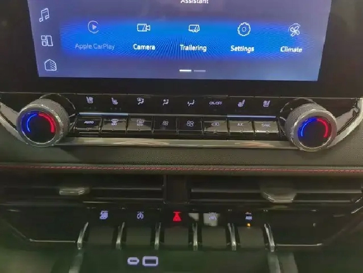 - REAR AXLE 3.42 RATIO,TIRES 265/65R18 ALL-TERRAIN BLACKWALL 32 OD (STD),DRIVER MEMORY SETTINGS RECALLS DRIVER PRESETS FOR POWER DRIVER SEAT AND OUTSIDE MIRRORS,JET BLACK/ADRENALINE RED PERFORATED LEATHER-APPOINTED FRONT SEAT TRIM,ARMREST REAR CENTRE,SEATS VENTILATED DRIVER AND FRONT PASSENGER,STEERING WHEEL HEATED,MAP POCKET DRIVER SEATBACK,11.3 DIAGONAL ADVANCED COLOUR LCD DISPLAY WITH GOOGLE BUILT-IN includes colour touch-screen multi-touch display AM/FM stereo Bluetooth streaming audio for music and most phones