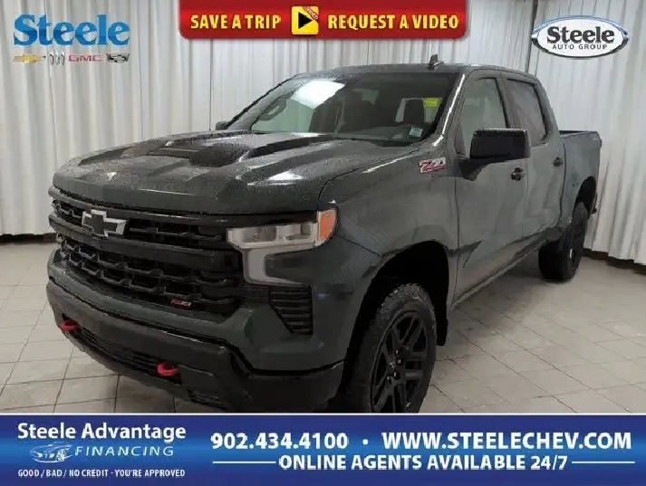 GVWR 7100 LBS. (3221 KG),CONVENIENCE PACKAGE II includes (UG1) Universal Home Remote (A48) rear sliding power window (PZ8) Hitch Guidance with Hitch View and (UET) Trailering App Includes (UQA) Bose Premium Sound System.,ENGINE 5.3L ECOTEC3 V8 (355 hp [265 kW] @ 5600 rpm 383 lb-ft of torque [518 Nm] @ 4100 rpm); featuring available Dynamic Fuel Management that enables the engine to operate in 17 different patterns between 2 and 8 cylinders depending on demand to optimize power delivery and efficiency (Includes (N10) dual exhaust.),REAR AXLE 3.23 RATIO,CYPRESS GREY,LT TRAIL BOSS PREFERRED EQUIPMENT GROUP includes standard equipment,TRANSMISSION 10-SPEED AUTOMATIC WITH ELECTRONIC TRANSMISSION RANGE SELECTOR (ETRS) electronically controlled with overdrive tow-haul mode and steering column paddle shifters. Includes Cruise Grade Braking and Powertrain Grade Braking,SEATS FRONT BUCKET with centre console (Includes (EPH) Electronic Transmission Range Selector (console mounted).,SUNROOF POWER on Crew Cab models,PROTECTION PACKAGE includes (B1J) wheel house liners and (CGN) Chevytec spray-on bedliner