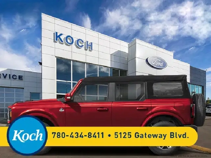 Our Bronco's trim level is Outer Banks. Inside, heated leather-trimmed bucket seats with power adjustability, a heated leather steering wheel, and dual-zone automatic climate control create a cabin thats both comfortable and commanding. The 12-inch SYNC 4 touchscreen with wireless Apple CarPlay, Android Auto, and connected navigation keeps you seamlessly in control, while the premium audio system with seven speakers delivers crisp sound wherever the road leads. Every adventure feels effortless thanks to trail-specific systems like Trail Control, Trail Turn Assist, and Trail One-Pedal Drive. Exterior features like 18-inch bright machined aluminum wheels, removable roof panels, and body-coloured accents emphasize capability and confidence. Safety and awareness are bolstered by Ford Co-Pilot360 technologies including BLIS with Cross-Traffic Alert, Lane-Keeping Assist, Automatic Emergency Braking, and a Reverse Sensing System. Combining authentic 4x4 engineering with modern innovation, this SUV is built to perform as fearlessly as it looks, on the trail, on the road, and everywhere in between.