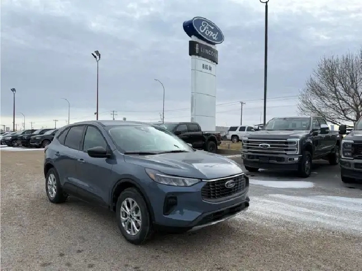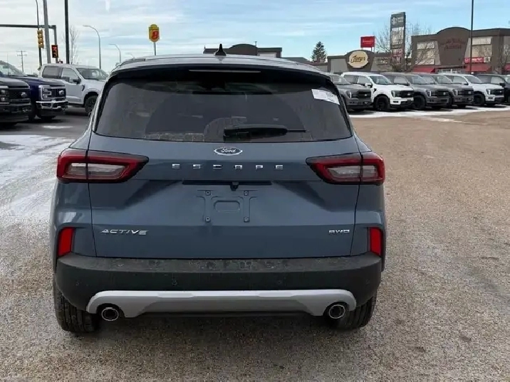 Meet the new 2026 Ford Escape Active AWD in Blue, a dynamic SUV that marries style with capability. This all-wheel-drive powerhouse is designed to provide excellent handling on any road surface, ensuring a smooth and confident drive.The exterior boasts alloy wheels and a striking blue finish, making a bold statement wherever you go. Inside, the black interior offers a sophisticated ambiance, complemented by heated seats and a heated steering wheel for those chilly Canadian days. The cabin is thoughtfully equipped with comfort and convenience in mind, featuring power windows and keyless entry.On the technology front, this Ford Escape is ahead of the curve with smart device integration and a Wi-Fi hotspot, keeping you connected on the move. Safety is a priority with features like a backup camera, brake assist, lane assist, and a full suite of driver assistance options designed to ensure peace of mind on every journey.Perfectly suited for families in need of space and versatility or anyone with a sense of adventure, this Ford Escape is ready to take you wherever you need to go. Contact our dealership today to learn more about the impressive features and performance of this remarkable SUV. Our team is here to help you make it yours!