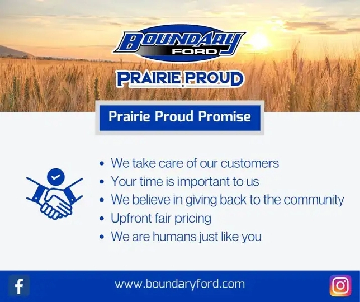We are conveniently located at 2502 50th Avenue in the border city of Lloydminster and we are open Monday to Saturday. If our location is not convenient for you, we have delivery to your door available - countrywide! Our knowledgeable Sales Consultants are ready to answer your questions and help you find the right vehicle for you! Here at Boundary Ford we're prairie proud and we offer the best deals in the prairies! We are an AMVIC licensed dealership.