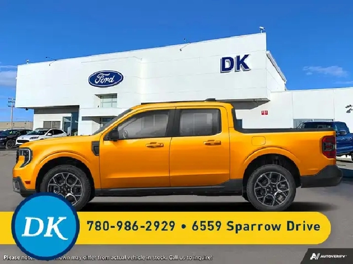 Our Maverick's trim level is Lariat. This advanced hybrid pickup truck blends capability, efficiency, and premium technology, offering all-wheel drive, Class I towing with trailer sway control, spray-in bed liner, integrated storage, and a 1,400 kg maximum payload for confident hauling and utility. Inside, ActiveX heated front bucket seats with power lumbar, a heated leatherette steering wheel, voice-activated dual-zone automatic climate control, and a 13.2" SYNC 4 display with B&O sound, wireless Apple CarPlay/Android Auto, SiriusXM Traffic, connected navigation, 5G Wi-Fi hotspot, and keyfob remote start create a connected and comfortable cabin. Safety is exceptional with Ford Co-Pilot360 technologies including blind-spot assist, lane centering and lane-keeping aid, adaptive cruise with stop-and-go, aerial view and multiple cameras, reverse brake assist, pre-collision assist with automatic emergency braking and intersection support, front cross-traffic mitigation, front/rear parking sensors, Safety Canopy airbags, and electronic stability control with roll stability management. This vehicle has been upgraded with the following features: Sunroof, 501a Equipment Group, Heated Seats, 19" Aluminum Wheels, Tow Package, Black Appearance Package, Power Sliding Rear Window.