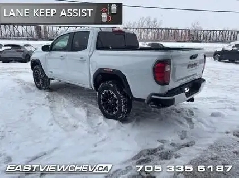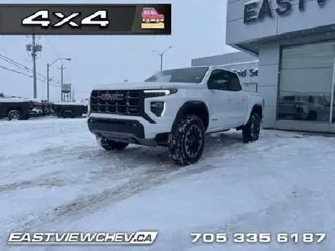 Spray-On Bed Liner! With poised handling, refined interior appoinments and genuine off-road capability, this 2026 Canyon is a force to be reckoned with. Aimed at shoppers who desire the capability of a traditional pickup without the compromise of a full-size truck, this 2026 GMC Canyon is ready to take on whatever you throw at it. From work-site duties to intense off-road sessions, this Canyon is sure to never skip a beat! This Summit White Crew Cab 4X4 pickup has an Automatic transmission and is powered by a 310HP 2.7L 4 Cylinder Engine. Our Canyon's trim level is AT4. This trim delivers premium comfort and cutting-edge technology, featuring an 11.3-inch Premium Infotainment System with Google Built-In, wireless Apple CarPlay and Android Auto, SiriusXM with 360L, Wi-Fi hotspot capability, and customizable profiles that keep entertainment and settings seamless. Heated power-adjustable front seats with lumbar support, dual-zone automatic climate control, rear air vents, remote vehicle start, soft-touch interior materials, and multiple USB charging ports create a refined and connected driving environment. Safety is advanced with Forward Collision Alert, Automatic Emergency Braking, Lane Keep Assist with Lane Departure Warning, Blind Zone Steering Assist with Trailering, Rear Cross Traffic Braking, Rear Park Assist, an HD Rear Vision Camera, Following Distance Indicator, Teen Driver mode, and StabiliTrak stability control providing confidence on every journey. This vehicle has been upgraded with the following features: Spray-On Bed Liner. To apply right now for financing use this link: https://www.eastviewchev.ca/FinancePreQualForm 4.79% financing for 84 months. Buy this vehicle now for the lowest bi-weekly payment of $397.36 with $0 down for 84 months @ 4.79% APR O.A.C. (Complete pricing and payments may differ than advertised, depending on model, trim and options. ). Incentives expire 2026-02-02. See dealer for details. Includes: Environmental fees ($1.00) OMVIC Fee ($10.00) Tire Stewardship ($29.20).(HST), license & registration not included.Eastview Chevrolet is dedicated to making sure your experience is exciting, fun and enjoyable. We are located at 222 Government Rd. in Kapuskasing. We have hundreds of vehicle to choose from and will go out of our way to find you exactly what you are looking for. Call one of our professional staff to arrange your next test drive in a New Chevrolet, Buick or GMC vehicles. Call 705-335-6187. o~o