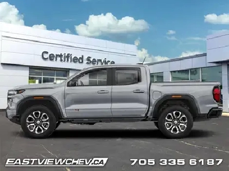 Off-Road Suspension, Heated Seats, Remote Start, Lane Keep Assist, Apple CarPlay! This iconic midsize truck offers exceptional versatility and robust build quality. Aimed at shoppers who desire the capability of a traditional pickup without the compromise of a full-size truck, this 2026 GMC Canyon is ready to take on whatever you throw at it. From work-site duties to intense off-road sessions, this Canyon is sure to never skip a beat! This Sterling Metallic Crew Cab 4X4 pickup has an Automatic transmission and is powered by a 310HP 2.7L 4 Cylinder Engine. Our Canyon's trim level is AT4. This trim delivers premium comfort and cutting-edge technology, featuring an 11.3-inch Premium Infotainment System with Google Built-In, wireless Apple CarPlay and Android Auto, SiriusXM with 360L, Wi-Fi hotspot capability, and customizable profiles that keep entertainment and settings seamless. Heated power-adjustable front seats with lumbar support, dual-zone automatic climate control, rear air vents, remote vehicle start, soft-touch interior materials, and multiple USB charging ports create a refined and connected driving environment. Safety is advanced with Forward Collision Alert, Automatic Emergency Braking, Lane Keep Assist with Lane Departure Warning, Blind Zone Steering Assist with Trailering, Rear Cross Traffic Braking, Rear Park Assist, an HD Rear Vision Camera, Following Distance Indicator, Teen Driver mode, and StabiliTrak stability control providing confidence on every journey. This vehicle has been upgraded with the following features: Off-Road Suspension, Heated Seats, Remote Start, Lane Keep Assist, Apple CarPlay, Android Auto, Park Assist . To apply right now for financing use this link: https://www.eastviewchev.ca/FinancePreQualForm 4.79% financing for 84 months. Buy this vehicle now for the lowest bi-weekly payment of $397.36 with $0 down for 84 months @ 4.79% APR O.A.C. (Complete pricing and payments may differ than advertised, depending on model, trim and options. ). Incentives expire 2026-03-02. See dealer for details. Includes: Environmental fees ($1.00) OMVIC Fee ($10.00) Tire Stewardship ($29.20).(HST), license & registration not included.Eastview Chevrolet is dedicated to making sure your experience is exciting, fun and enjoyable. We are located at 222 Government Rd. in Kapuskasing. We have hundreds of vehicle to choose from and will go out of our way to find you exactly what you are looking for. Call one of our professional staff to arrange your next test drive in a New Chevrolet, Buick or GMC vehicles. Call 705-335-6187. Come by and check out our fleet of 20 used cars and trucks and 120 new cars and trucks for sale in Kapuskasing. o~o