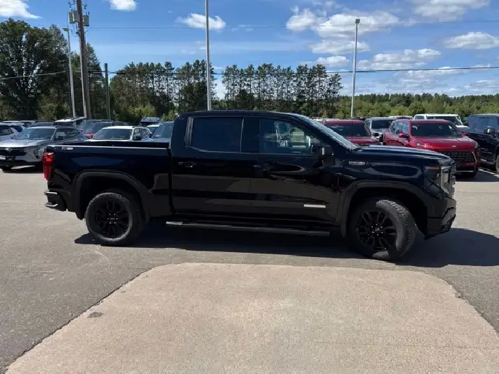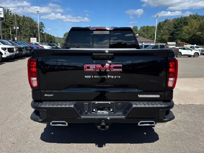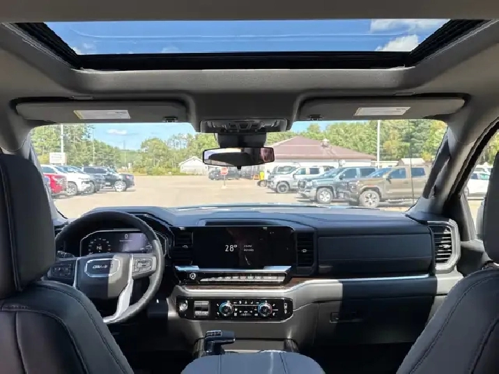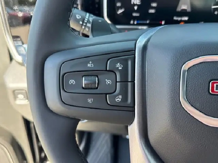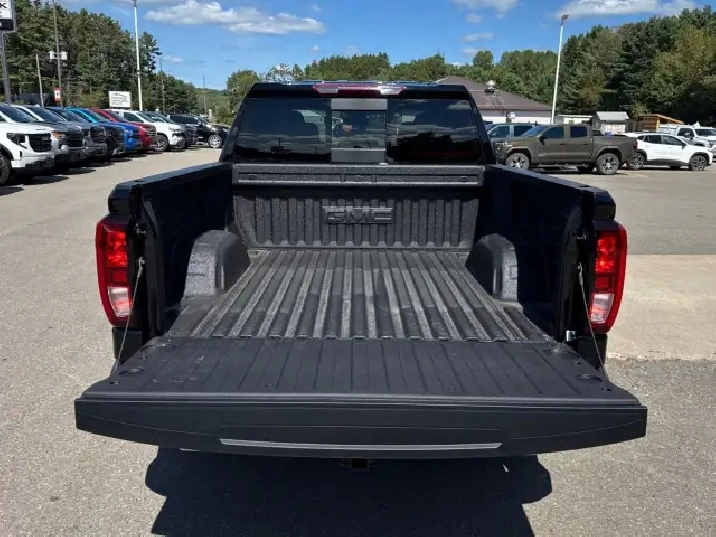 3,025 kms,Rear axle 3.42 ratio,Pickup bed,7000-lb GVWR,Automatic Stop/Start,Auto-locking rear differential,Single-speed electronic Autotrac transfer case,High Capacity suspension,Four wheel drive,220-amp alternator,Heavy-duty 730 CCA battery,Fully boxed frame,Integrated trailer brake controller,Front recovery hooks,12 cargo tie-downs,Electric power steering,4-wheel antilock disc brakes with DURALIFE rotors,Brake wear indicator,Capless fuel fill,Single outlet exhaust,Aluminized stainless-steel exhaust system,StabiliTrak with trailer sway control & hill start assist,Dual-stage airbags with side-impact & curtain airbags,Hitch Guidance,Following Distance Indicator,Adjustable front seat belt guides,Buckle to Drive safety system,Rear seat reminder,Rear seat belt indicator,10-way power driver seat with lumbar,Manual passenger seat,Heated front seats,60/40 split rear bench with storage package,Carpeted flooring with floor mats,Tilt & telescoping steering column,Wrapped heated steering wheel,12.3 digital driver display,13.4 GMC Premium touchscreen,Compass in cluster,Exterior temp display,Remote start system,Theft-deterrent system,Steering column lock,120-volt interior outlet,Dual rear USB charge ports,120-volt bed outlet,Dual-zone climate control,Rear air vents,Manual tilt rearview mirror,Assist handles,17 steel spare wheel,Locking spare tire carrier,Body-color front bumper,Body-color rear bumper with CornerStep,CornerStep rear bumper,Gloss black grille insert,LED fog lamps,LED signature taillamps,Deep-tinted glass,Cab-mounted cargo lamp,LED bed lighting,Standard tailgate,Manual EZ Lift tailgate with power lock,Tailgate protection caps,Body-color door handles