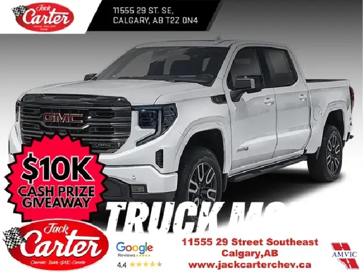 Looking for your best deal on a new Sierra in Calgary? Then try shopping with us: Jack Carters Chevrolet Buick GMC. Located in SE Calgary with easy access off the Deerfoot and Douglasdale, we’ve been giving Calgary and surrounding area the best deal and the best service since 1962. Our Sales staff is experienced and friendly making your truck purchase easy and straightforward. No games, no gimmicks, no marked up GM MSRPs like our competitors do, just great advice and low prices from the start. True GM window stickers on diplay on our lot and in our showroom. Call us for a consult today 403-258-6300Choose your Model, flexibility of short box, standard box or long box. Choose your Cab fro Reg cab, Double cab and crew cab. Choose your engine from the 6.2L V8 that delivers best-in-class V8 power and towing, an available LZ0 Duramax® 3.0L Turbo-Diesel that offers better fuel efficiency than any other full-size pickup, the legendary 5.3L V8, and GM’s new Turbo 2.7L option producing the same torque as the 6.2L V8. Choose your trim from the everything you need Pro, the new tried and tested SLE and the SLT, sporty Elevation, the top of the line Denali and Denali Ultimate, or go with our factory lifted lineup: the At4, or the overcome anything AT4X. Choose Jack Carter and give our friendly sale staff a call at 403-258-6300 or visit us at jackcarterchev.com. Key Available features: 4X4 / Four Wheel Drive, G80 Locking Differential, Z71 Off Road Suspension, X31 off Road package, Front Bucket seats, Leather seats, Power passenger seat, memory seats, Max Trailer Package, NHT, Bose sound system, Power sliding rear window, Remote start, heated seats, heated steering wheel, cooled seats, Front park assist, rear parking assist, Surround vision camera, Wireless charging, Adaptive cruise control, Supercruise, Carbon Fiber Bed, Premium Suspension with adaptive ride control, XM radio, Apple Carplay and Android Auto, Massage seats, rear camera mirror and more.