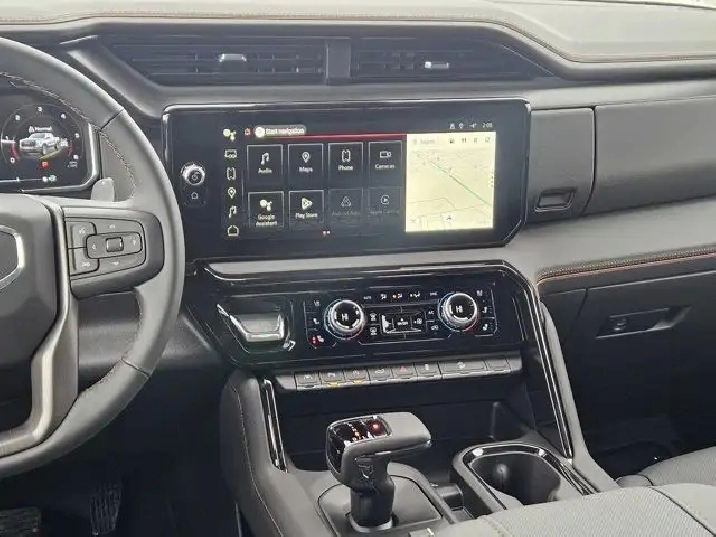 - AT4 PREFERRED EQUIPMENT GROUP includes standard equipment,AT4 PREFERRED PACKAGE includes (UG1) Universal Home Remote and (A48) rear sliding power window,SUNROOF POWER,3 YEARS SIRIUSXM,TRANSMISSION 10-SPEED AUTOMATIC WITH ELECTRONIC PRECISION SHIFT ELECTRONICALLY CONTROLLED with overdrive tow/haul mode and steering column paddle shifters. Includes Cruise Grade Braking and Powertrain Grade Braking (STD),REAR AXLE 3.23 RATIO,TECHNOLOGY PACKAGE includes (DRZ) Rear Camera Mirror and (UV6) Multicolour 15 Diagonal Head-Up Display (Includes (UVN) Bed View Camera.),GVWR 7200 LBS. (3266 KG) (STD),ENGINE DURAMAX 3.0L TURBO-DIESEL I6 (305 hp [227 kW] @ 3750 rpm 495 lb-ft of torque [671 Nm] @ 2750 rpm) (Includes (KW5) 220-amp alternator and (K05) engine block heater.) (STD),ONYX BLACK,JET BLACK WITH KALAHARI ACCENTS PERFORATED LEATHER FRONT SEAT TRIM,4-Wheel Disc Brakes,Locking/Limited Slip Differential,Power Windows,Front Collision Mitigation,Front Collision Warning,Four Wheel Drive,Auxiliary Audio Input,Conventional Spare Tire,Tow Hooks,Bluetooth Connection,ABS,Requires Subscription,Power Steering,Satellite Radio,Telematics,Tires - Rear All-Terrain,Automatic Highbeams,Keyless Start,MP3 Capability,Tires - Front All-Terrain,Lane Keeping Assist,Tow Hitch,Turbocharged,Aluminum Wheels,Requires Subscription,Lane Departure Warning,Power Folding Mirrors,Front Head Air Bag,Keyless Start,Aerial View Display System,Tire Pressure Monitor,Intermittent Wipers,A/C,Variable Speed Intermittent Wipers,Navigation System,Front Collision Warning,Adaptive Cruise Control,Climate Control,Keyless Entry,Smart Device Integration,Heated Steering Wheel,Stability Control,Power Driver Seat,Rear Head Air Bag,Mirror Memory,Cruise Control,Leather Seats,Rear Bench Seat,Cooled Front Seat(s),Back-Up Camera,Front Collision Warning,Integrated Tailgate Step,Bluetooth Connection,Power Windows,Auxiliary Audio Input,Daytime Running Lights,Traction Control,Daytime Running Lights,Rear Parking Aid,Floor Mats,Mirror Memory,Power Door Locks,Heated Front Seat(s),Premium Sound System,Heated Front Seat(s),Floor Mats,Power Mirror(s),Power Windows,Lane Departure Warning,Passenger Adjustable Lumbar,Steering Wheel Audio Controls,Front Collision Warning,MP3 Capability,Front Side Air Bag,Seat Memory,Driver Adjustable Lumbar,Security System,Front Collision Mitigation,Driver Monitoring,Auto-Dimming Rearview Mirror,Bluetooth Connection,Telematics,Cross-Traffic Alert,Heated Mirrors,Pass-Through Rear Seat,Heated Rear Seat(s),Satellite Radio,Blind Spot Monitor,Smart Device Integration,Automatic Highbeams,Rear Defrost,Privacy Glass,Bucket Seats,AM/FM Stereo,WiFi Hotspot,Lane Keeping Assist,Front Collision Mitigation,Adjustable Steering Wheel,Remote Engine Start,Bed Liner,Passenger Air Bag Sensor,Power Door Locks,Rain Sensing Wipers,Fog Lamps,Requires Subscription,Driver Air Bag,Auxiliary Audio Input,Power Passenger Seat,Passenger Air Bag,Multi-Zone A/C,MP3 Capability,Requires Subscription,LED Headlights
