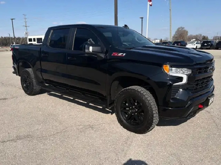 One Owner, Low Km's, P/Roof, Leather Pkg Up-Level, 5.3L, Dark essentials Pkg, Bose Sound System, Convenience Pkg II, Safety Pkg, Protection Pkg, Bucket Seats W/Centre Console & Wireless Charging, Nice TruckThe 2024 Chevrolet Silverado 1500 LT Trail Boss captivates with its robust stance and sleek yet commanding Black finish, paired with a capable 4×4 drivetrain that ensures confident handling on any terrain.The exterior of this Truck is both functional and stylish, featuring eye-catching alloy wheels and the convenience of a short box that makes it versatile for both work and leisure. Inside, the interior is designed with your comfort in mind, offering spaciousness through its Crew Cab configuration. You'll appreciate the premium feel of heated front seats and a heated steering wheel, perfect for those cold Canadian mornings.This Silverado is packed with technology, including smart device integration and a user-friendly infotainment system with satellite radio and a wi-fi hotspot to keep you connected on the go. Safety and driver assistance are a priority, with features like a backup camera and lane assist providing peace of mind for both city and highway driving.Ideal for the adventurous driver who demands more from their truck, the Silverado 1500 LT Trail Boss suits those who appreciate power, comfort, and modern tech features combined in a rugged package. Don't miss the opportunity to own this exceptional vehicle. Contact our dealership today for more information and to schedule your test drive.Small Claim of $4,162 "Other Damage" Please see Carfax.