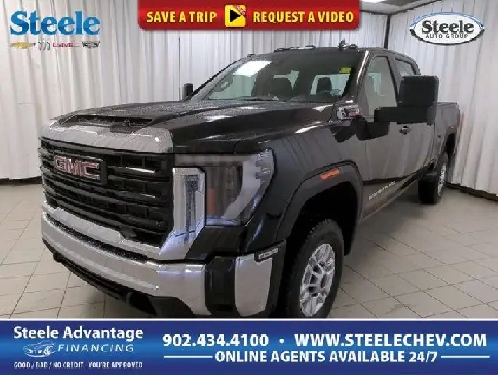 Our diesel-powered 2026 GMC Sierra 2500HD Pro Crew Cab 4X4 in Onyx Black is a bold work truck for people who need the best! Motivated by a TurboCharged 6.6 Liter DuraMax Diesel V8 delivering 470hp and 975 lb-ft of torque to a 10 Speed Allison Automatic transmission engineered for energetic towing and hauling. This Four Wheel Drive truck also features an automatic locking rear differential and a 2-speed transfer case for getting a grip on your next challenge. Our Sierra sets a high bar for style with LED lighting, chrome bumpers, front recovery hooks, trailering mirrors, cargo-area lighting, side bed steps, bed liner, and rear corner steps. Comfort and convenience are built into our Pro cabin, which boasts supportive seats, a tilt-adjustable steering wheel, single-zone climate control, power accessories, a 12V power outlet, and a 3.5-inch driver display. Impressive infotainment awaits with a 7-inch touchscreen, Android Auto?, Apple CarPlay?, Bluetooth?, and an AM/FM/USB stereo system. There's plenty of intelligent interior storage space, too! On the clock or off, GMC helps you stay safer with features like an HD rearview camera, automatic braking, lane-departure warning, hill start assistance, trailer sway control, hitch guidance, forward collision warning, stability/traction control, and more. When tough jobs call, our Sierra 2500 Pro is ready to answer! Save this Page and Call for Availability. We Know You Will Enjoy Your Test Drive Towards Ownership! Steele Chevrolet Atlantic Canada's Premier Pre-Owned Super Center. Being a GM Certified Pre-Owned vehicle ensures this unit has been fully inspected fully detailed serviced up to date and brought up to Certified standards. Market value priced for immediate delivery and ready to roll so if this is your next new to your vehicle do not hesitate. You've dealt with all the rest now get ready to deal with the BEST! Steele Chevrolet Buick GMC Cadillac (902) 434-4100 Metros' Premier Credit Specialist Team Good/Bad/New Credit? Divorce? Self-Employed?