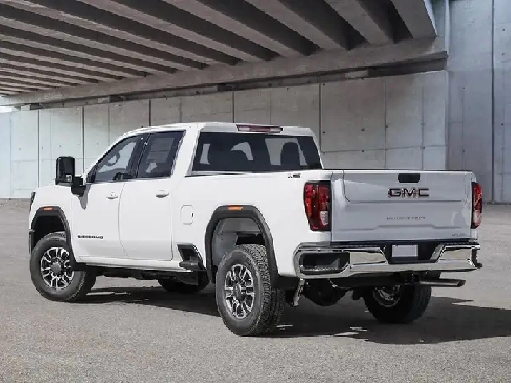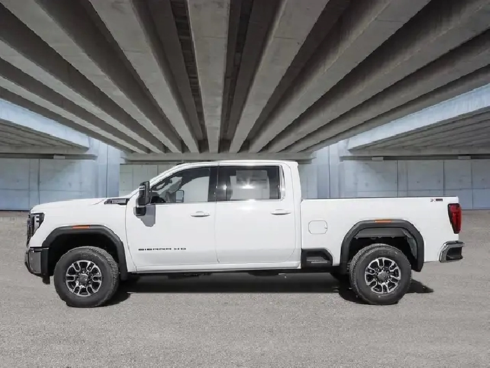 Our Sierra 2500HD's trim level is SLE. This trim blends durability with comfort and modern technology, making it a versatile workhorse. Inside, the cabin features cloth seating with a split-bench design, a 13.4" GMC Premium Infotainment System with Google built-in, wireless Apple CarPlay and Android Auto, Bluetooth, Wi-Fi hotspot capability, and a 12.3" digital driver display. The exterior adds chrome bumpers, LED projector headlamps, signature LED taillamps, CornerSteps, integrated bed steps, and a power-locking EZ Lift tailgate. Trailering is simplified with an integrated Trailer Brake Controller, Hitch Guidance, multiple tie-downs, and power-adjustable heated trailering mirrors. The Sierra HD Pro Safety suite provides Forward Collision Alert, Lane Departure Warning, Automatic Emergency Braking, Front Pedestrian Braking, IntelliBeam auto high beams, Following Distance Indicator, Teen Driver technology, HD Rear Vision Camera, and StabiliTrak stability control. This vehicle has been upgraded with the following features: X31 Off Road Package, 18 inch Aluminum Wheels, Gooseneck/ 5th Wheel Prep Package.