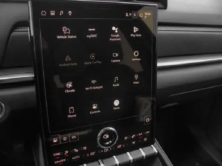 - 15" diagonal Premium GMC Infotainment System high contrast display with Google Built-In compatibility including navigation capability, colour touch-screen, multi-touch display, connected apps, personalized for each driver's settings, Natural Voice Recognition and Phone Integration for Wireless Apple CarPlay/Wireless Android Auto for compatible phones