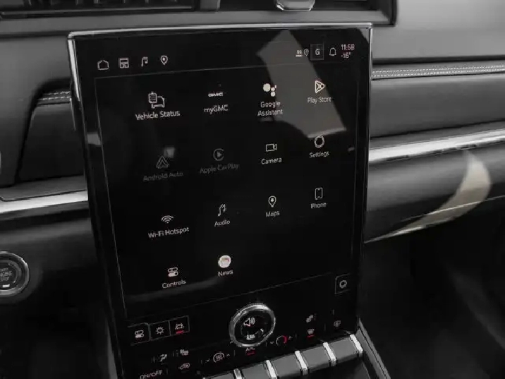 - 15" diagonal Premium GMC Infotainment System high contrast display with Google Built-In compatibility including navigation capability, colour touch-screen, multi-touch display, connected apps, personalized for each driver's settings, Natural Voice Recognition and Phone Integration for Wireless Apple CarPlay/Wireless Android Auto for compatible phones