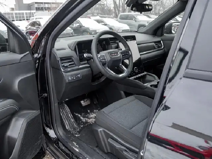 Black Edition | Gloss Black Wheels | Black Emblems | HD Surround Vision | Heated Steering Wheel | Heated Seats | Lane Keep Assist | Auto Emergency Braking | Adaptive Cruise Control he 2026 GMC Terrain is a brand new compact SUV designed to meet the demands of Canadian drivers seeking versatility, comfort, and advanced technology in a stylish package. With its sleek black exterior and four-door configuration, this Terrain offers a perfect balance of urban sophistication and rugged capability, ideal for navigating both city streets and weekend adventures across diverse Canadian terrains. Under the hood, the Terrain is powered by a refined 4-cylinder gasoline engine paired with an all-wheel-drive system, providing confident traction and stability in varying weather conditions. This combination ensures a smooth, responsive drive whether youre commuting on icy roads or cruising through open highways. The powertrain delivers efficient performance without compromising on the capability needed for Canadian winters and beyond. Inside, the Terrain offers a thoughtfully designed cabin featuring comfortable bucket seats upholstered in durable cloth, complemented by a heated steering wheel to keep you warm during cold mornings. The interior climate is easily controlled with air conditioning, while power windows and locks add convenience. Advanced technology includes a navigation system and satellite radio, enhancing your driving experience with entertainment and seamless route guidance. Keyless entry and an illuminated visor mirror add practical touches that elevate everyday usability. Safety and driver assistance are priorities in the 2026 Terrain, equipped with adaptive cruise control and lane departure warning to support confident highway driving. Reverse park assist with parking sensors improves maneuverability in tight spaces, while driver and passenger airbags provide essential protection. The inclusion of a block heater ensures reliable starts in freezing temperatures, a crucial feature for Canadian winters. Privacy glass adds a layer of comfort and security, making this SUV as practical as it is stylish. Overall, the 2026 GMC Terrain stands out as a well-rounded compact SUV that blends modern technology, safety, and comfort with the ruggedness needed for Canadian roads. Its combination of features makes it a compelling choice for drivers who value reliability, convenience, and all-weather capability in a sleek, new vehicle. Specifications 4-cylinder gasoline engine with all-wheel drive for balanced power and traction Heated steering wheel and block heater for enhanced cold-weather comfort Navigation system and satellite radio for connected and entertaining drives Adaptive cruise control and lane departure warning for advanced safety Keyless entry and power windows for everyday convenience