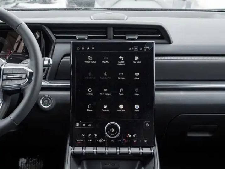 - 15" diagonal Premium GMC Infotainment System high contrast display with Google Built-In compatibility including navigation capability, colour touch-screen, multi-touch display, connected apps, personalized for each driver's settings, Natural Voice Recognition and Phone Integration for Wireless Apple CarPlay/Wireless Android Auto for compatible phones