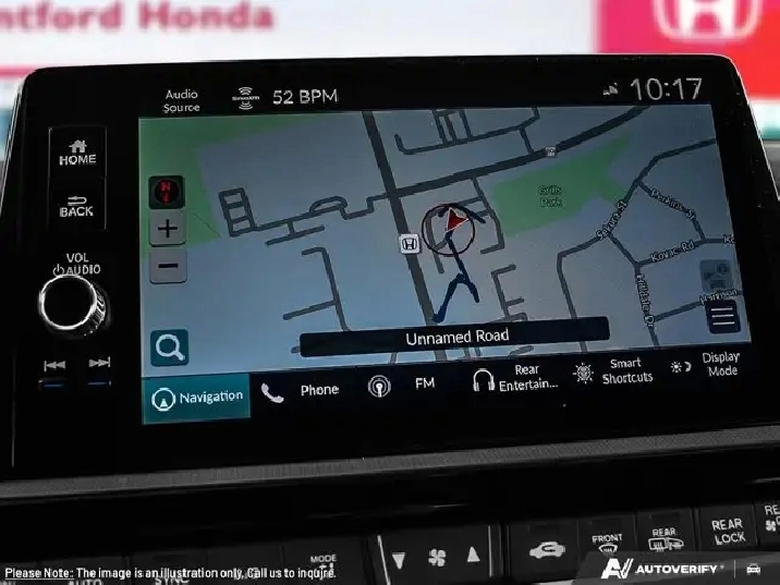 - Radio: AM/FM/HD Audio System -inc: HondaLink connected services, 9" touchscreen centre display w/navigation, 11 speakers including subwoofer, Speed-Sensitive Volume Control (SVC), SiriusXM, Apple CarPlay/Android Auto (wired/wireless), Bluetooth streaming audio, Wi-Fi hotspot capability, 1 front USB-A and 1 front USB-C SiriusXM only available in certain areas.