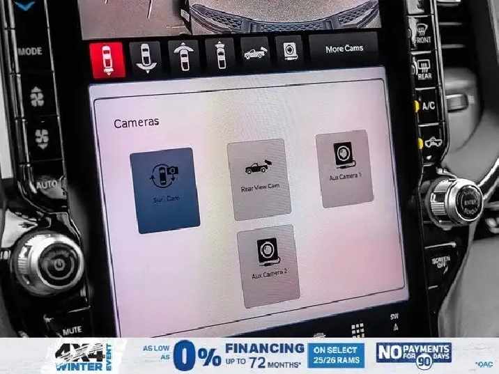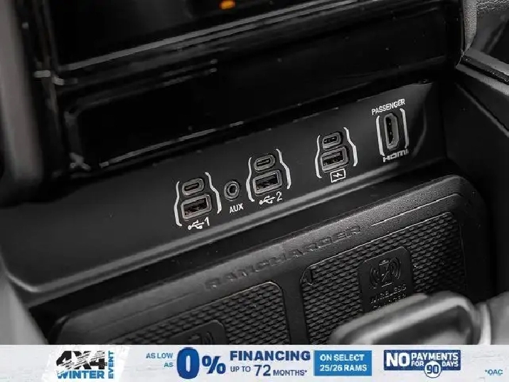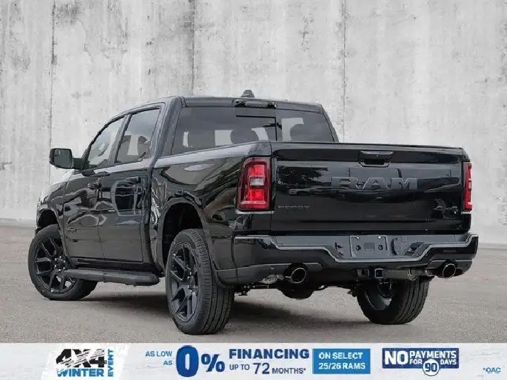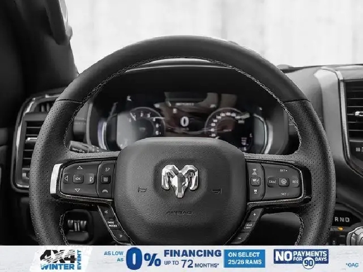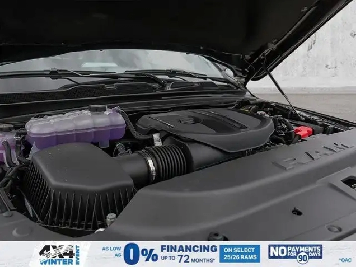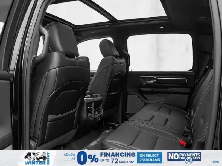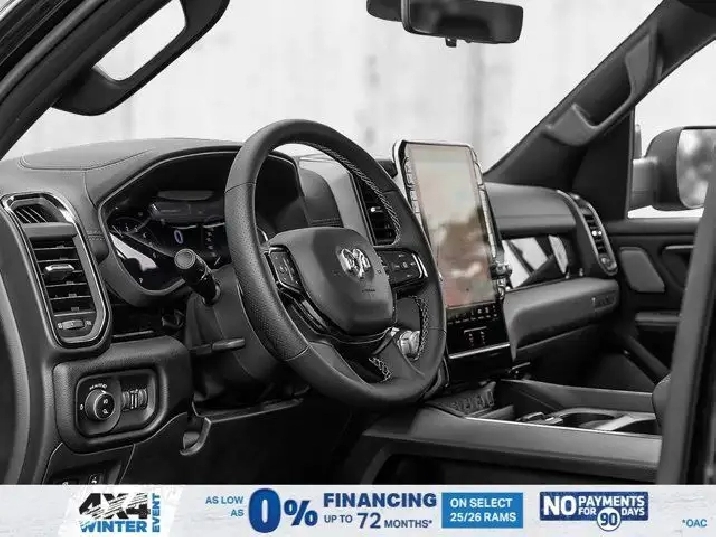 - 3.92 REAR AXLE RATIO,SPORT LEVEL 1 EQUIPMENT GROUP -inc: Rain-Sensing Windshield Wipers Power Adjustable Pedals w/Memory Radio: Uconnect 5 Nav w/14.4 Display Front Passenger Interactive Display 115V Rear Auxiliary Power Outlet Media Hub w/2 USB Charging Ports 2nd-Row Ventilated Seats Security Alarm Smartphone As A Key 14.4 Touchscreen Display Dual Wireless Charging Pad 19-Speaker harman/kardon Premium Sound Exterior Mirrors w/Memory Settings Driver Seat w/Memory Setting Power Tailgate Radio/Driver Seat/Mirrors/Pedals Memory,ENGINE: 3.0L I6 HURRICANE SO TWIN TURBO ESS (STD),QUICK ORDER PACKAGE 21L SPORT -inc: Engine: 3.0L I6 Hurricane SO Twin Turbo ESS Transmission: 8-Speed Automatic,DUAL-PANE PANORAMIC SUNROOF -inc: LED Dual Dome Reading Lamps,NIGHT EDITION -inc: Black Mesh Grille w/Black Surround Wheels: 22 x 9 Aluminum Tires: 285/45R22XL BSW All Season Pirelli Brand Tires Black RAM Grille Badge,BLACK LEATHER-FACED FRONT BUCKET SEATS -inc: Under Seat Lighting Power 2-Way Passenger Lumbar Adjust Front Ventilated Seats Power 8-Way Adjustable Front Passenger Seat,SPORT PERFORMANCE HOOD,RADIO: UCONNECT 5 NAV W/14.4 DISPLAY,124.9-LITRE (27.4-GALLON) FUEL TANK,WHEELS: 22 X 9 ALUMINUM -inc: Tires: 285/45R22XL BSW All Season Pirelli Brand Tires,TRANSMISSION: 8-SPEED AUTOMATIC (STD),DIAMOND BLACK CRYSTAL PEARL,TRAILER BRAKE CONTROL,ANTI-SPIN DIFFERENTIAL REAR AXLE,TIRES: 285/45R22XL BSW ALL SEASON,Turbocharged,Four Wheel Drive,Keyless Entry,Power Door Locks,Remote Engine Start,Tires - Front Performance,Power Door Locks,Keyless Start,Navigation System,Auto-Dimming Rearview Mirror,Satellite Radio,Brake Assist,Tires - Rear Performance,Conventional Spare Tire,Fog Lamps,Automatic Headlights,AM/FM Stereo,Requires Subscription,HD Radio,Driver Vanity Mirror,Privacy Glass,Driver Illuminated Vanity Mirror,Cruise Control,ABS,Daytime Running Lights,Pass-Through Rear Seat,Traction Control,Passenger Illuminated Visor Mirror,Tow Hitch,4-Wheel Disc Brakes,Power Mirror(s),Power Folding Mirrors,Trip Computer,Lane Departure Warning,Premium Sound System,Rear Defrost,HD Radio,Steering Wheel Audio Controls,Automatic Highbeams,Chrome Wheels,Leather Steering Wheel,Bucket Seats,MP3 Capability,Navigation System,A/C,Multi-Zone A/C,Keyless Entry,Premium Sound System,Climate Control,Passenger Vanity Mirror,Power Driver Seat,Auxiliary Audio Input,Intermittent Wipers,Integrated Turn Signal Mirrors,Rear Bench Seat,Power Windows,Requires Subscription,LED Headlights,Chrome Wheels,Cloth Seats,Smart Device Integration,Keyless Start,Heated Steering Wheel,Satellite Radio,Variable Speed Intermittent Wipers,Floor Mats,Power Door Locks,Adjustable Steering Wheel,Driver Adjustable Lumbar,Requires Subscription,Vinyl Seats,Power Steering,Heated Mirrors,Adaptive Cruise Control,Remote Engine Start,Bluetooth Connection,Universal Garage Door Opener,Blind Spot Monitor,Back-Up Camera,Immobilizer,WiFi Hotspot,Passenger Air Bag,Tire Pressure Monitor,Traction Control,Power Door Locks,Driver Air Bag,Driver Monitoring,Stability Control,Smart Device Integration,Rear Parking Aid,Cross-Traffic Alert,Passenger Air Bag Sensor,Adjustable Pedals,Front Head Air Bag,Bluetooth Connection,Lane Keeping Assist,Aerial View Display System,Child Safety Locks,Front Collision Mitigation,Rear Head Air Bag,Smart Device Integration,Trip Computer,Lane Departure Warning,Front Side Air Bag,Heated Front Seat(s),Power Windows,Evasion Assist,Cross-Traffic Alert