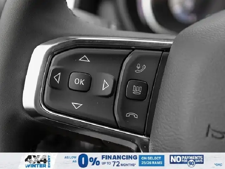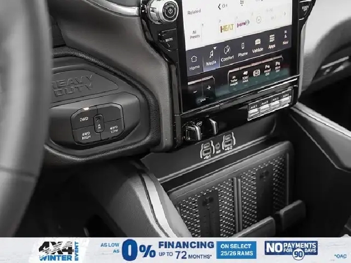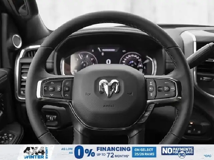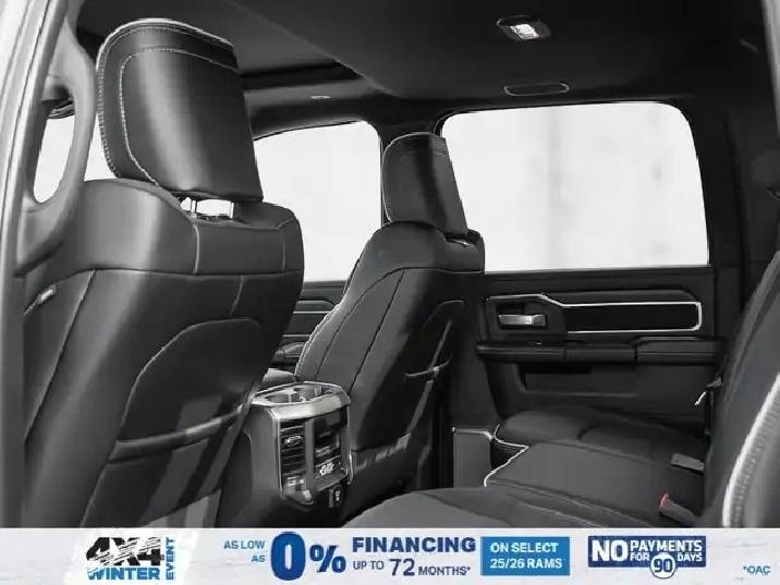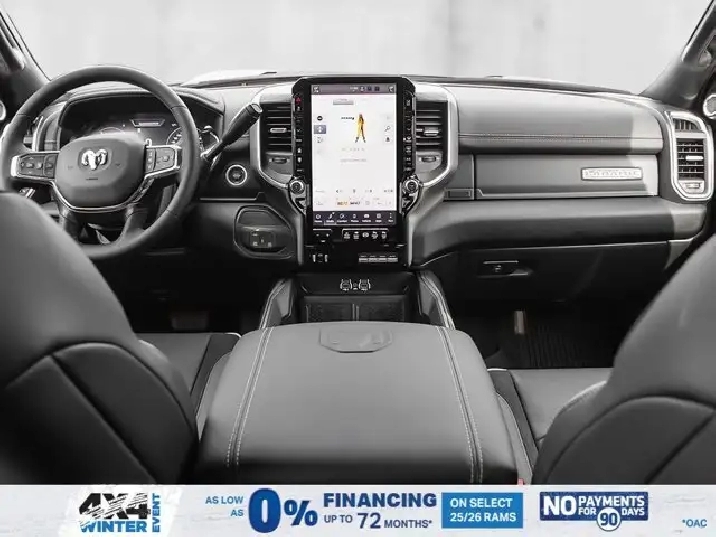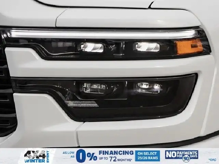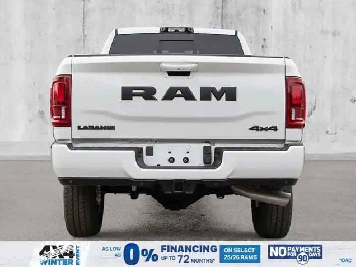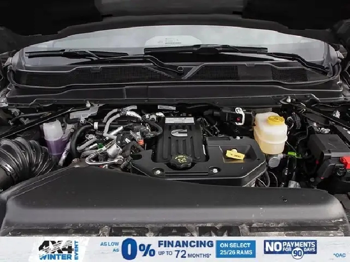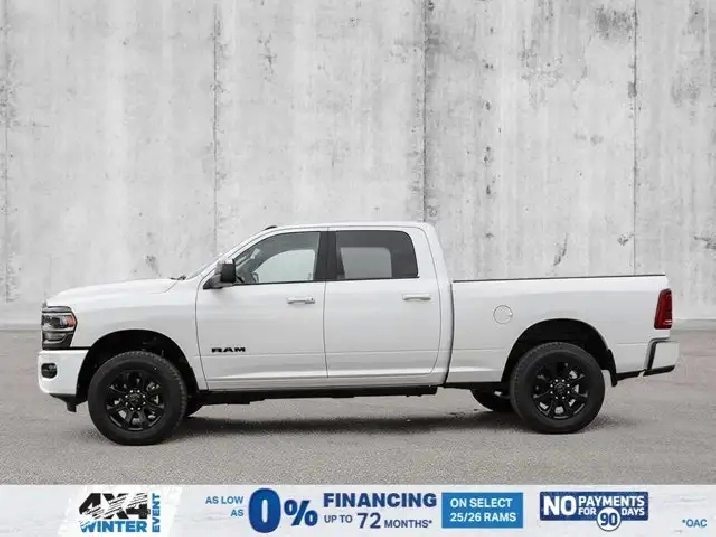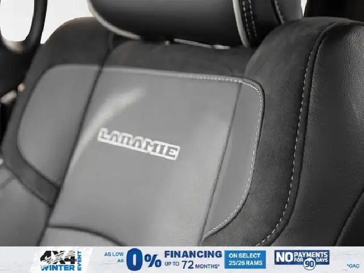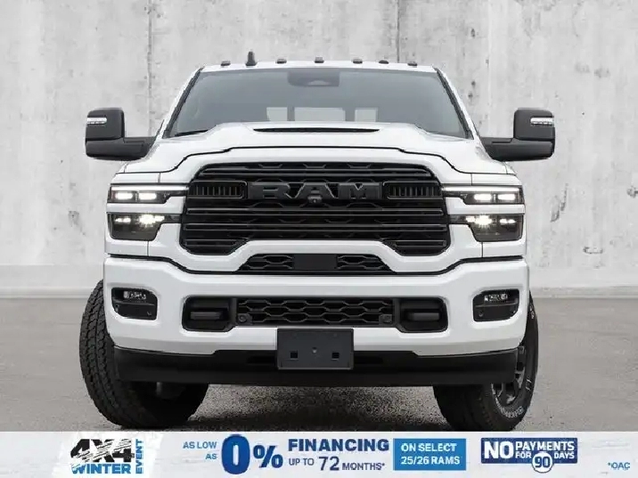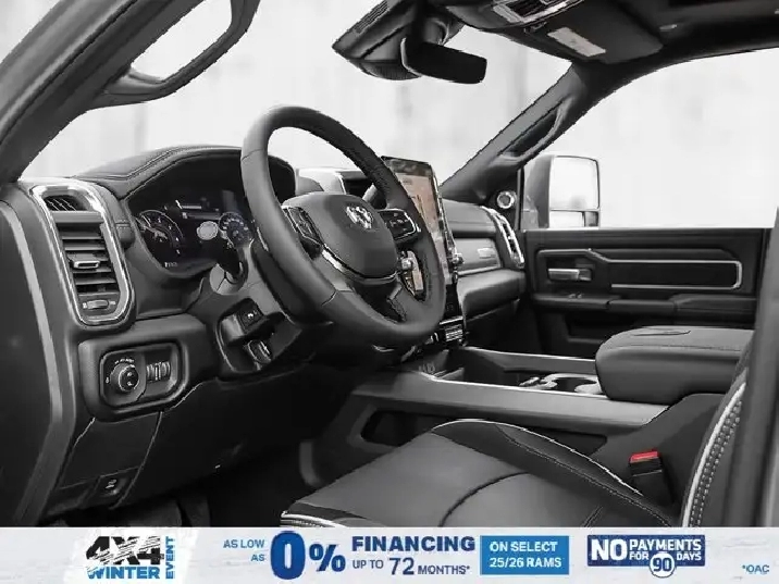 • LARAMIE LEVEL 2 PLUS EQUIPMENT GROUP -inc: Power Adjustable Pedals w/Memory Power Deployable Running Boards Drowsy Driver Detection MOPAR Deployable Bed Step Active Lane Management System Remote Tailgate Release 17-Speaker harman/kardon Prem Sound Second Row In-Floor Storage Bins Centre Stop Lamp w/Cargo Camera Rain-Sensing Windshield Wipers Radio: Uconnect 5 Nav w/14.4 Display LED Bed Lighting Traffic Sign Recognition Adaptive Steering System Auto-Dimming Exterior Driver Mirror Door Trim Panel Foam Bottle Insert 14.4 Touchscreen Display Power Heated Folding Telescope Chrome Mirror MOPAR Spray-In Bedliner Automatic High-Beam Headlamp Control Exterior Mirrors w/Memory Settings Auto Dimming Exterior Passenger Mirror Auto Adjust In Reverse Exterior Mirrors,TIRES: LT285/60R20E OWL ON/OFF-ROAD,POWER DEPLOYABLE RUNNING BOARDS,POWER SUNROOF,IP-MOUNTED AUXILIARY SWITCHES -inc: Dash Pass Thru Wire Circuits,BRIGHT WHITE,QUICK ORDER PACKAGE 24H -inc: Engine: 6.7L Cummins I-6 HO Turbo Diesel Transmission: 8-Speed TorqueFlite Automatic,BLACK LEATHER-FACED BUCKET SEATS -inc: Bucket Seats Dual Wireless Charging Pad Front Ventilated Seats Radio/Driver Seat/Mirrors/Pedals Memory Full-Length Upgraded Floor Console,TRANSMISSION: 8-SPEED TORQUEFLITE AUTOMATIC -inc: 12 Single-Wheel Rear Axle,WHEELS: 20 X 8 BLACK ALUMINUM,DELETE DEPLOYABLE BED STEP,RADIO: UCONNECT 5 NAV W/14.4 DISPLAY,REAR AUTO-LEVELLING AIR SUSPENSION,CLEARANCE LAMPS,GVWR: 5 352 KG (11 800 LBS),TRANSFER CASE SKID PLATE SHIELD,ENGINE: 6.7L CUMMINS I-6 HO TURBO DIESEL -inc: Selective Catalytic Reduction (Urea) Dual 730-Amp Maintenance-Free Batteries Cummins Turbo Diesel Badge Heavy-Duty Engine Cooling Supplemental Heater 3.42 Axle Ratio MOPAR Winter Front Grille Cover GVWR: 5 352 kg (11 800 lbs) Current Generation Engine Controller Diesel Exhaust Brake Front Bumper Sight Shields Capless Fuel-Filler,NIGHT EDITION -inc: Tires: LT285/60R20E OWL On/Off-Road Black Exterior Badging Wheels: 20 x 8 Black Aluminum Grille w/Gloss Black Billets & Accents Body-Colour Grille Surround Sport Performance Hood,CENTRE STOP LAMP W/CARGO CAMERA,3.42 AXLE RATIO,Tow Hitch,Four Wheel Drive,Heated Mirrors,Power Mirror(s),Brake Assist,Intermittent Wipers,Power Door Locks,Tow Hooks,LED Headlights,Aluminum Wheels,4-Wheel Disc Brakes,ABS,Locking/Limited Slip Differential,Conventional Spare Tire,Variable Speed Intermittent Wipers,Integrated Turn Signal Mirrors,Fog Lamps,Power Folding Mirrors,Power Steering,Automatic Headlights,Daytime Running Lights,Rear Defrost,Privacy Glass,Requires Subscription,Satellite Radio,Steering Wheel Audio Controls,HD Radio,Requires Subscription,Satellite Radio,Premium Sound System,Requires Subscription,Power Door Locks,Premium Sound System,Bluetooth Connection,Auxiliary Audio Input,MP3 Capability,HD Radio,Navigation System,Traction Control,Satellite Radio,AM/FM Stereo,Keyless Entry,Auto-Dimming Rearview Mirror,Heated Front Seat(s),Floor Mats,Tire Pressure Monitor,Blind Spot Monitor,Cross-Traffic Alert,Multi-Zone A/C,Universal Garage Door Opener,Passenger Vanity Mirror,Adaptive Cruise Control,Stability Control,Remote Engine Start,Cruise Control,Keyless Start,Front Side Air Bag,Rear Parking Aid,Passenger Air Bag Sensor,Front Collision Mitigation,Smart Device Integration,Passenger Adjustable Lumbar,Child Safety Locks,Heated Steering Wheel,Smart Device Integration,Passenger Air Bag,Climate Control,Power Passenger Seat,Driver Adjustable Lumbar,Power Windows,Split Bench Seat,Keyless Entry,Remote Engine Start,Power Door Locks,Rear Bench Seat,Driver Vanity Mirror,Driver Air Bag,Requires Subscription,Navigation System,Driver Illuminated Vanity Mirror,Back-Up Camera,Trip Computer,Rear Head Air Bag,Front Head Air Bag,Premium Synthetic Seats,Immobilizer,Power Windows,Passenger Illuminated Visor Mirror,Power Door Locks,Power Driver Seat,Adjustable Steering Wheel,Keyless Start,A/C,Traction Control,Security System,Trip Computer,Smart Device Integration,Leather Seats,WiFi Hotspot,Pass-Through Rear Seat,Bluetooth Connection