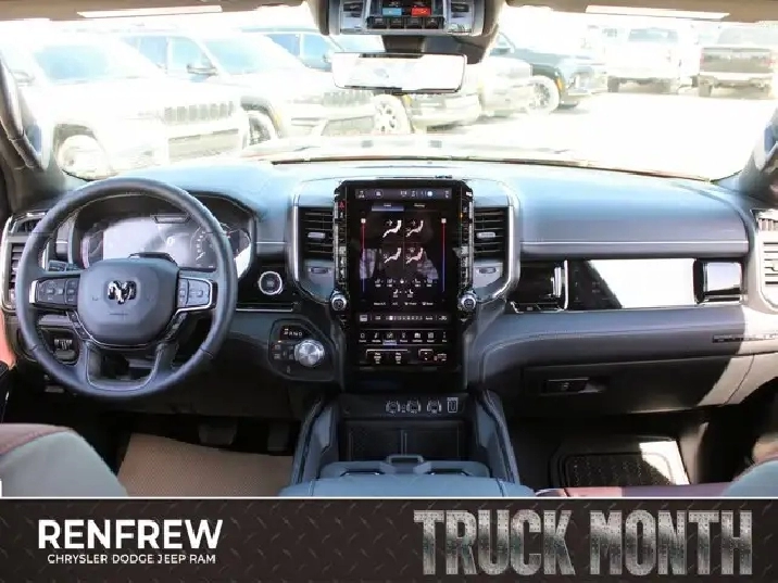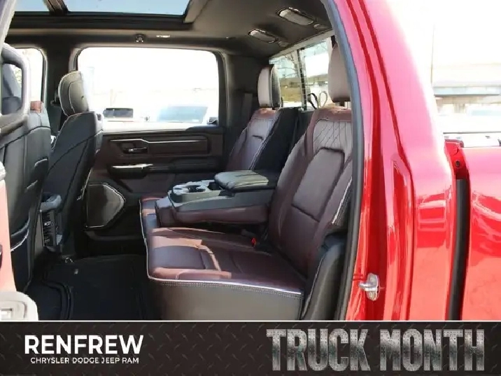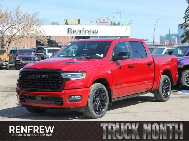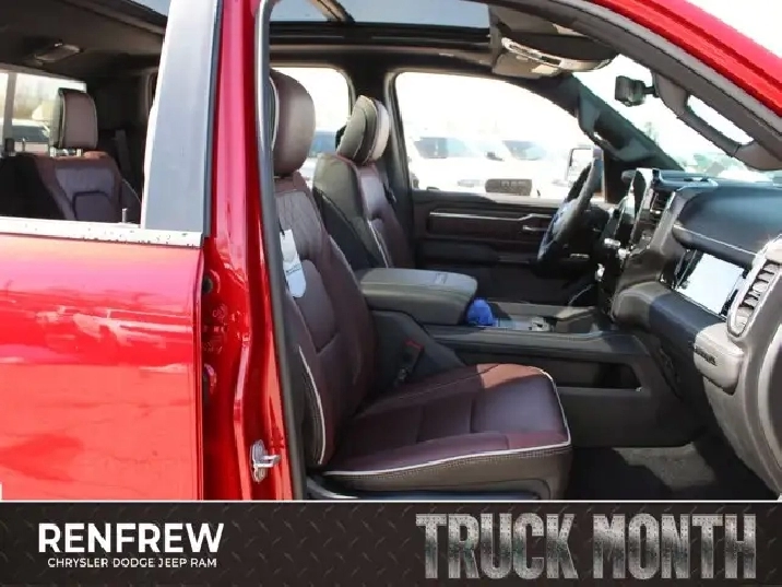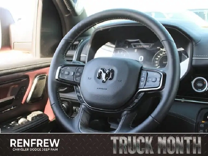 - QUICK ORDER PACKAGE 27M LIMITED -inc: Engine: 5.7L HEMI VVT V8 w/MDS & eTorque Transmission: 8-Speed Automatic,WHEELS: 22 X 9 PREMIUM BLACK-PAINTED ALUMINUM,TRI-FOLD SOFT TONNEAU COVER,RADIO: UCONNECT 5 NAV W/14.4 DISPLAY,EBONY RED/BLACK PREMIUM QUILTED LEATHER-FACED BUCKET SEATS,LIMITED LEVEL A EQUIPMENT GROUP -inc: Surround View Camera System LED Centre High-Mounted Stop Lamps Tri-Fold Soft Tonneau Cover Radio: Uconnect 5 Nav w/14.4 Display Traffic Sign Recognition RamBox Cargo Management System Hands-Free Active Driving Assist System Head-Up Display Evasive Steer Assist Drowsy Driver Detection Exterior 115V Auxiliary Power Outlet Intersection Collision Assist System Smartphone As A Key 14.4 Touchscreen Display 240 Amp Alternator Digital Rearview Mirror w/Autodim 12-Way/1-Way Trailer Connector,TRANSMISSION: 8-SPEED AUTOMATIC (STD),ENGINE: 5.7L HEMI VVT V8 W/MDS & ETORQUE -inc: 48-Volt Belt Starter Generator Heavy-Duty Engine Cooling Passive Tuned Mass Damper Delete Alternator HEMI Badge Passive Cold End Exhaust 18 Aluminum Spare Wheel,DUAL-PANE PANORAMIC SUNROOF -inc: LED Dome Reading Lamp LED Dual Dome Reading Lamps,NIGHT EDITION -inc: Tires: 285/45R22XL BSW All Season Accent-Colour Premium Power Mirrors Black Headlamp Bezels Wheels: 22 x 9 Premium Black-Painted Aluminum Pirelli Brand Tires Black Exterior Badging Black Daylight Opening Mouldings Accent Colour Door Handles Accent Colour Tailgate Handle Black Dual Exhaust Tips Body-Colour Front Bumper Black Grille w/Bright Surround Body-Colour Rear Bumper w/Step Pads Black Tail Lamp Bezels Black Painted Exterior Mirror Caps Black RAM Grille Badge,MOLTEN RED PEARL,MULTI-FUNCTION TAILGATE -inc: Remote Tailgate Release RAMs Head Badge,TIRES: 285/45R22XL BSW ALL SEASON,STEEL SPORT HOOD,Four Wheel Drive,Turbocharged,Air Suspension,4-Wheel Disc Brakes,Air Suspension,ABS,Air Suspension,Brake Assist,Tow Hitch,Power Steering,Locking/Limited Slip Differential,Aluminum Wheels,Heated Rear Seat(s),Power Driver Seat,Cruise Control,Front Side Air Bag,Universal Garage Door Opener,Driver Vanity Mirror,Navigation System,Requires Subscription,Cruise Control Steering Assist,Power Windows,Driver Adjustable Lumbar,Automatic Headlights,Power Folding Mirrors,Cross-Traffic Alert,Adaptive Cruise Control,Mirror Memory,Climate Control,Traction Control,Power Door Locks,Privacy Glass,Power Door Locks,Keyless Entry,Adjustable Steering Wheel,Multi-Zone A/C,Power Retractable Running Boards,Heated Mirrors,Adjustable Pedals,Keyless Start,Front Collision Mitigation,Blind Spot Monitor,Seat Memory,Lane Departure Warning,Heated Rear Seat(s),Passenger Adjustable Lumbar,Woodgrain Interior Trim,Cooled Front Seat(s),Tires - Front Performance,Tow Hooks,Heated Front Seat(s),Cooled Rear Seat(s),Passenger Illuminated Visor Mirror,Trip Computer,Seat-Massage,Traction Control,Power Door Locks,A/C,HD Radio,Smart Device Integration,Remote Engine Start,Rear Defrost,Passenger Air Bag,Integrated Turn Signal Mirrors,Smart Device Integration,Front Head Air Bag,Power Passenger Seat,Stability Control,Rain Sensing Wipers,WiFi Hotspot,Back-Up Camera,Passenger Vanity Mirror,Rear Bench Seat,Requires Subscription,Remote Engine Start,Rear Head Air Bag,Steering Wheel Audio Controls,Intermittent Wipers,Premium Sound System,Premium Sound System,Driver Illuminated Vanity Mirror,Rear Parking Aid,AM/FM Stereo,Tires - Rear Performance,Navigation System,Immobilizer,Fog Lamps,Trip Computer,Mirror Memory,Auxiliary Audio Input,Power Mirror(s),Heated Front Seat(s),Daytime Running Lights,Lane Keeping Assist,Automatic Highbeams,Satellite Radio,Bed Liner,Power Windows,Tire Pressure Monitor,Passenger Air Bag Sensor,Security System,Seat-Massage,Smart Device Integration,HD Radio,Heated Steering Wheel,Keyless Entry,Requires Subscription,MP3 Capability,Auto-Dimming Rearview Mirror,Keyless Start,Leather Seats,Driver Air Bag,Premium Synthetic Seats,Bluetooth Connection,Satellite Radio,Pass-Through Rear Seat,Variable Speed Intermittent Wipers,Floor Mats,Bucket Seats,Heated Rear Seat(s),Conventional Spare Tire,Cooled Rear Seat(s),LED Headlights,Child Safety Locks,Power Door Locks,Leather Steering Wheel,Running Boards/Side Steps,Bluetooth Connection,Lane Departure Warning