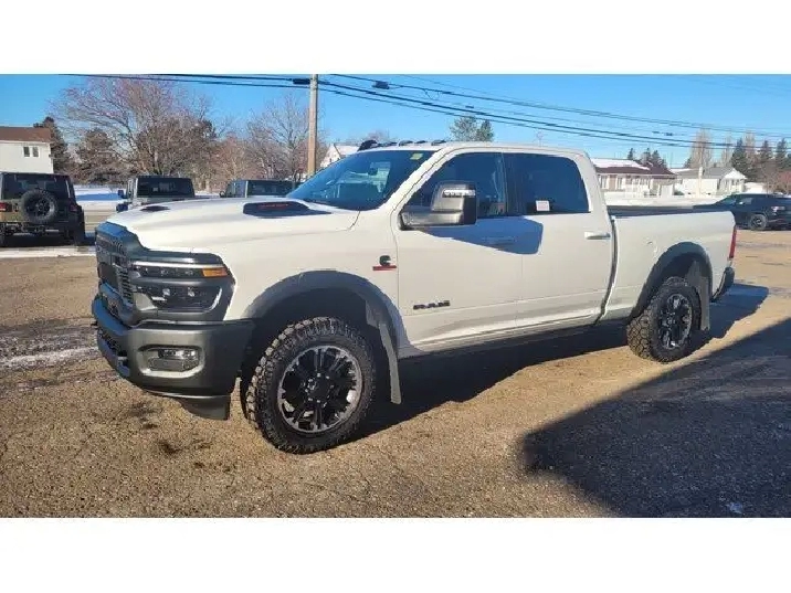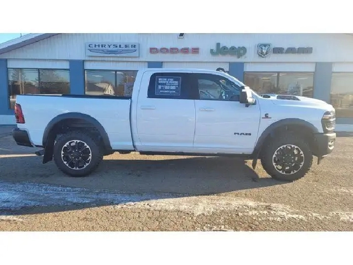 BRIGHT WHITE CLEARCOAT,MONOTONE PAINT,POWER SUNROOF,SAFETY GROUP -inc: Active Lane Management System Auto High Beam Headlamp Control Rain Sensitive Windshield Wipers Drowsy Driver Detection Traffic Sign Recognition Adaptive Steering System,AUTO LEVEL REAR AIR SUSPENSION,QUICK ORDER PACKAGE 24R REBEL -inc: Engine: 6.7L I6 Cummins HO Turbo Diesel Transmission: 8-Speed TorqueFlite HD Automatic,MOPAR 20K DIRECT MOUNT 5TH WHEEL HITCH,SPORT PERFORMANCE HOOD,GVWR: 10 000 LBS (Z7L),BLACK LEATHER TRIMMED BUCKET SEATS (NL) -inc: Bucket Seats Dual Wireless Charging Pad Power 2-Way Passenger Lumbar Adjust Ventilated Front Seats 115V Auxiliary Rear Power Outlet Media Hub w/2 Charge Only USBs Heated Second Row Seats Power Adjust 8-Way Front Passenger Seat Front Seat Back Map Pockets Radio/Driver Seat/Mirrors/Pedals Memory Full Length Upgraded Floor Console,MOPAR FRONT & REAR RUBBER FLOOR MATS,5TH WHEEL/GOOSENECK TOWING PREP GROUP,REBEL LEVEL 2 EQUIPMENT GROUP -inc: Power Adjustable Pedals w/Memory Front Passenger Interactive Display Power Deployable Running Boards MOPAR Deployable Bed Step Premium Overhead Console Leather Wrapped Shift Control 17 Speaker harman/kardon Premium Sound LED Interior Lighting LED Dome Lamp w/On/Off Switch Universal Garage Door Opener Sun Visors w/Illuminated Vanity Mirrors CTR Stop Lamp w/Cargo View Camera Rain Sensitive Windshield Wipers LED Bed Lighting Body Color Door Handles Overhead LED Lamps Auto Dim Exterior Mirror Leather Wrapped Grab Handle 14.4 Touchscreen Display Power Heated Fold Telescopic Mirrors w/Memory Sport Performance Hood Radio: Uconnect 5 Nav w/14.4 Display MOPAR Spray In Bedliner Front Door Locks 2-Door Passive Entry Auto High Beam Headlamp Control Exterior Mirrors w/Memory Luxury Door Trim Panel (CTH) Aluminum Litho Instrument Panel Bezels w/Blk Trim MOPAR Front & Rear Rubber Floor Mats Auto Dim Exterior Passenger Mirror Auto Ad,CTR STOP LAMP W/CARGO VIEW CAMERA,I/P MOUNTED AUXILIARY SWITCHES -inc: Dash Pass Thru Wire Circuits,TOWING TECHNOLOGY GROUP -inc: Surround View Camera System Trailer Tire Pressure Monitoring System Trailer Reverse Guidance,TRANSMISSION: 8-SPEED TORQUEFLITE HD AUTOMATIC,ENGINE: 6.7L I6 CUMMINS HO TURBO DIESEL -inc: Selective Catalytic Reduction (Urea) Dual 730 Amp Maintenance Free Batteries Cummins Turbo Diesel Badge Heavy Duty Engine Cooling Diesel Exhaust Brake Supplemental Heater 3.42 Axle Ratio Front Bumper Sight Shields Fuel Tank Brush Guard Capless Fuel Fill w/o Discriminator GVWR: 11 040 lbs,3.42 AXLE RATIO,Four Wheel Drive,Locking/Limited Slip Differential,Tow Hitch,Power Steering,ABS,4-Wheel Disc Brakes,Brake Assist,Locking/Limited Slip Differential,Aluminum Wheels,Tires - Front All-Terrain,Tires - Rear All-Terrain,Conventional Spare Tire,Tow Hooks,Integrated Turn Signal Mirrors,Power Mirror(s),Power Folding Mirrors,Heated Mirrors,Rear Defrost,Intermittent Wipers,Variable Speed Intermittent Wipers,Privacy Glass,Power Door Locks,Fog Lamps,Daytime Running Lights,Automatic Headlights,LED Headlights,AM/FM Stereo,Navigation System,Satellite Radio,Bluetooth Connection,HD Radio,Requires Subscription,MP3 Capability,Steering Wheel Audio Controls,Auxiliary Audio Input,HD Radio,Satellite Radio,Requires Subscription,Heated Front Seat(s),Cooled Front Seat(s),Heated Front Seat(s),Power Driver Seat,Adjustable Steering Wheel,Trip Computer,Power Windows,Driver Adjustable Lumbar,Pass-Through Rear Seat,Rear Bench Seat,Leather Steering Wheel,Heated Steering Wheel,Keyless Start,Keyless Entry,Power Door Locks,Cruise Control,Adaptive Cruise Control,Climate Control,Multi-Zone A/C,A/C,Heated Front Seat(s),Passenger Vanity Mirror,Passenger Illuminated Visor Mirror,Auto-Dimming Rearview Mirror,Floor Mats,Navigation System,Smart Device Integration,Smart Device Integration,Bluetooth Connection,WiFi Hotspot,Power Door Locks,Power Windows,Adjustable Pedals,Trip Computer,Immobilizer,Security System,Traction Control,Stability Control,Traction Control,Front Side Air Bag,Front Collision Mitigation,Rear Parking Aid,Blind Spot Monitor,Cross-Traffic Alert,Tire Pressure Monitor,Driver Air Bag,Passenger Air Bag,Passenger Air Bag Sensor,Front Head Air Bag,Rear Head Air Bag,Child Safety Locks,Back-Up Camera