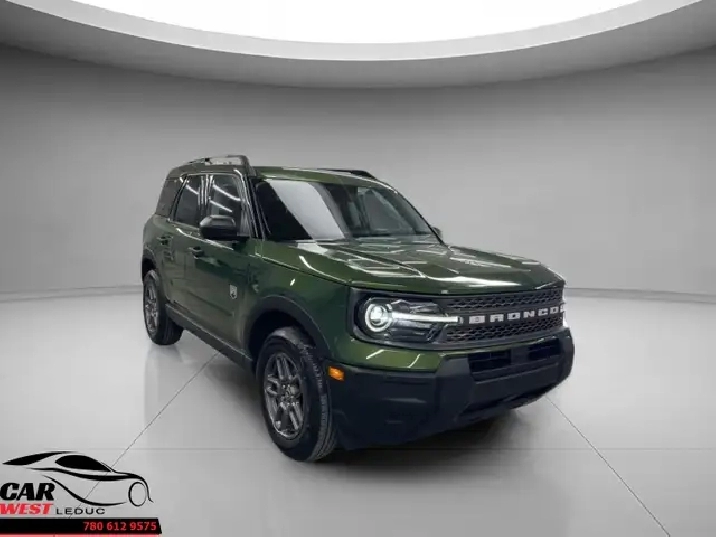 Meet the 2025 Ford Bronco Sport Big Bend, a compact SUV built for Canadian roads and changing weather. This used model at Car West Auto Sales in Leduc shows just 8,930 km. Its green exterior and grey interior give it a clean, modern look with classic Bronco character.