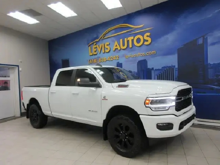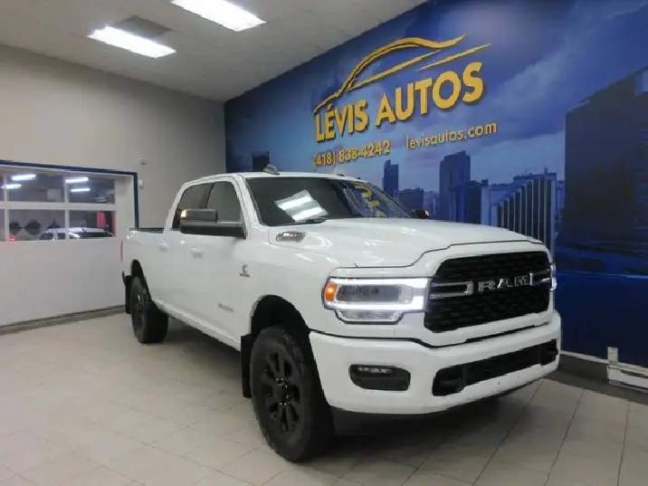 RAM 2500 2022 BIG HORN ÉDITION CUMMINS 6.7 LITRES TURBO DIESEL 4X4 CREW-CAB / BOITE 6.4 POUCES / DÉMARREUR A DISTANCE / BOITE PERCÉ ORIGINE / FOND DE BOITE LINE-X / INTÉRIEUR EN TISSU CHAUFFANT ET ÉLECTRIQUE VOLANT CHAUFFANT / CAMÉRA DE RECUL / SUSPENSION ARRIERE A LAIR / ÉCRAN 8.4 POUCES COMPATIBLE APPLECARPLAY ET ANDROID AUTO / PUSH START / AVEC SEULEMENT 63100 KM CERTIFIÉ ( RATIO DE 3.73,RAPPORT CARFAX DISPONIBLE) MOTEUR 6 CYLINDRE 6.7 LITRES CUMMINS TURBO DIESEL OFFRANT LA PUISSANCE DE 370 HP ET 850 LB-FT. TRANSMISSION AUTOMATIQUE AVEC LE MODE SHIFTRONIC A 6 VITESSE, MAGS 20 POUCES SUR PNEUS HOMOLOGUÉ POUR LHIVER A PRÉVOIR ( PRIX DU CAMION EN CONSÉQUENCE),PUSH START, AIR CLIMATISÉ, ATTACHE-REMORQUE CONTROL DE FREIN ÉLECTRIQUE DE COMPAGNIE, VITRES TEINTÉES, GROUPE ÉLECTRIQUE COMPLET,FOND DE BOITE LINE-X, RADIO AM/FM, CRUISE CONTROL, VOLANT AJUSTABLE ET TÉLESCOPIQUE CHAUFFANT, RPM, PHARES AUTOMATIQUE, FREIN ABS, TÉLÉ-VERROUILLAGE.GARANTIE DE 1 MOIS OU 1700 KM MOTOPROPULSEUR (GARANTIE PROLONGÉE DISPONIBLE À PRIX IMBATTABLE AVEC NATIONALE) FINANCEMENT RAPIDE ET AVANTAGEUX EN LIGNE OU SUR PLACE. CAMION EN TRES BONNE CONDITION A VOIR ABSOLUMENT.A NOTÉ QUE CE CAMION A DÉJA ÉTÉ IMPLIQUÉ DANS UN ACCIDENT EN 2022 LORSQUIL ÉTAIT PRESQUE NEUF SELON LE RAPPORT CARFAX.POUR PLUS DINFOS : 418-838-4242/418-554-7565. NOUS SOMMES SITUÉ AU 4585 BOULEVARD GUILLAUME-COUTURE, LÉVIS, G6W 6M6. LE PLUS GRAND CHOIX DE VÉHICULES USAGÉS À LÉVIS. AU PLAISIR DE VOUS SERVIR! VISITEZ NOTRE SITE INTERNET WWW.LEVISAUTOS.COM