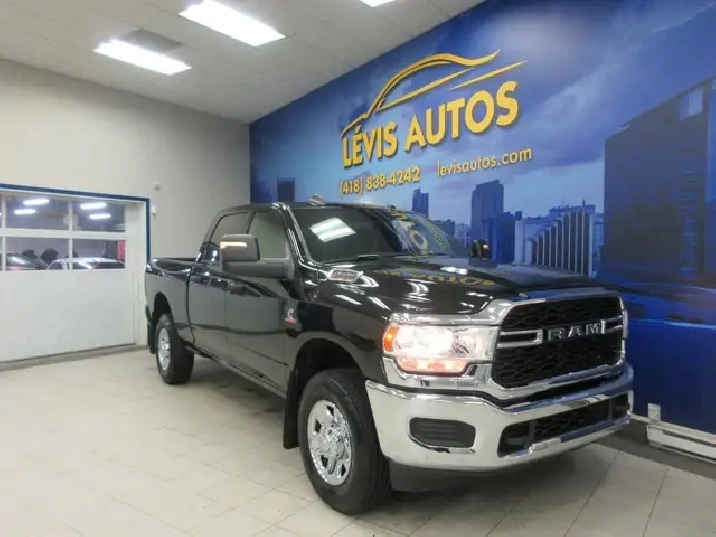 RAM 3500 2024 TRADESMAN ÉDITION CUMMINS 6.7 LITRES TURBO DIESEL 4X4 CREW-CAB / BOITE 6.4 POUCES / GPS NAVIGATION / FOND DE BOITE LINE-X / CAMÉRA DE RECUL / ÉCRAN 8.4 POUCES COMPATIBLE APPLECARPLAY ET ANDROID AUTO / PUSH START / AVEC SEULEMENT 23400 KM CERTIFIÉ ( UNIQUE PROPRIÉTAIRE,RATIO DE 3.73,RAPPORT CARFAX DISPONIBLE) MOTEUR 6 CYLINDRE 6.7 LITRES CUMMINS TURBO DIESEL OFFRANT LA PUISSANCE DE 370 HP ET 850 LB-FT. TRANSMISSION AUTOMATIQUE AVEC LE MODE SHIFTRONIC A 6 VITESSE,PUSH START, AIR CLIMATISÉ, ATTACHE-REMORQUE CONTROL DE FREIN ÉLECTRIQUE DE COMPAGNIE, VITRES TEINTÉES, GROUPE ÉLECTRIQUE COMPLET,FOND DE BOITE LINE-X, RADIO AM/FM, CRUISE CONTROL, VOLANT AJUSTABLE ET TÉLESCOPIQUE, RPM, PHARES AUTOMATIQUE, FREIN ABS, TÉLÉ-VERROUILLAGE.GARANTIE DE 6 MOIS OU 10000 KM MOTOPROPULSEUR (GARANTIE PROLONGÉE DISPONIBLE À PRIX IMBATTABLE AVEC NATIONALE) FINANCEMENT RAPIDE ET AVANTAGEUX EN LIGNE OU SUR PLACE. CAMION EN TRES BONNE CONDITION A VOIR ABSOLUMENT.POUR PLUS DINFOS : 418-838-4242/418-554-7565. NOUS SOMMES SITUÉ AU 4585 BOULEVARD GUILLAUME-COUTURE, LÉVIS, G6W 6M6. LE PLUS GRAND CHOIX DE VÉHICULES USAGÉS À LÉVIS. AU PLAISIR DE VOUS SERVIR! VISITEZ NOTRE SITE INTERNET WWW.LEVISAUTOS.COM
