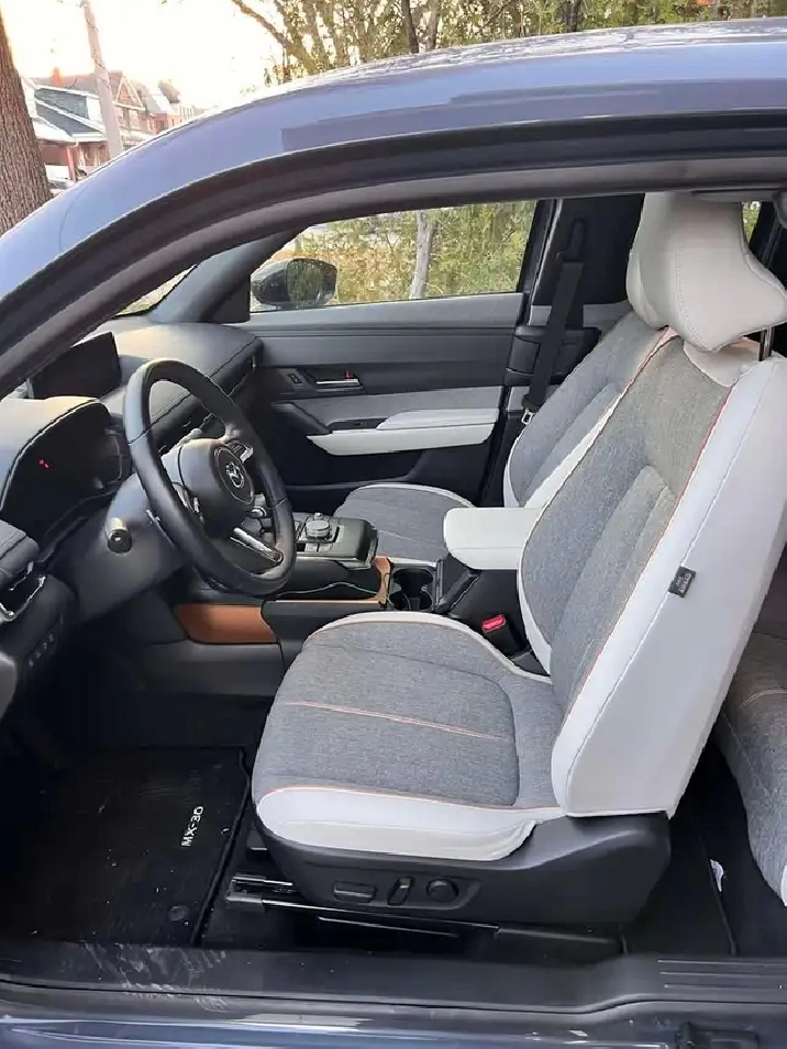 This is a rare fully electric Mazda that feels like a traditional, well-built car just with electric power. It has a standard gear selector (PRND), not a touchscreen-only or button setup like many EVs.