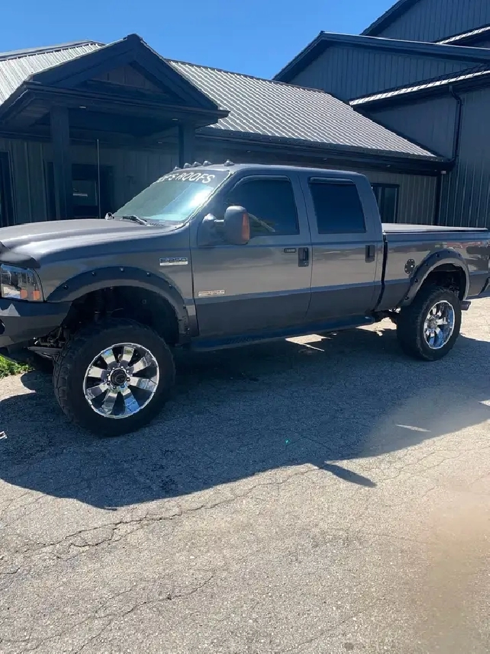 2004 f250 6 litre diesel truck has egr delete head gaskets we’re done 20 k ago it’s got cold air intake 6”magnaflow exhaust front to back 6” rough country lift I have two inch spacers if you want to go a bit higher I had the truck painted and new box a few years back needs a little body work it’s definitely the cleanest 04 on here hasn’t seen snow or rain in years always parked in heated shop this was built for a show truck frame and everything underneath got sand blasted and painted it’s also go after market head and tail light it’s got iron bull bumpers front and rear with 3 sets of Piaa lights also an alpine touch screen with 12 squar kicker sub with amp and battery cap I’ve got the bully dog programmer if interested call or text (519)758-7719